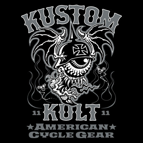 KUSTOM KULT & KROSS - Cycle Gear ~ White - Crew Neck - BLACK