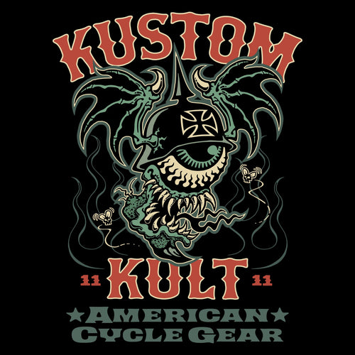 KUSTOM KULT & KROSS - Cycle Gear ~ Orange - Crew Neck - BLACK