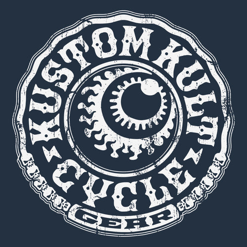 CYCLE GEAR ~ White- Crew Neck - Navy