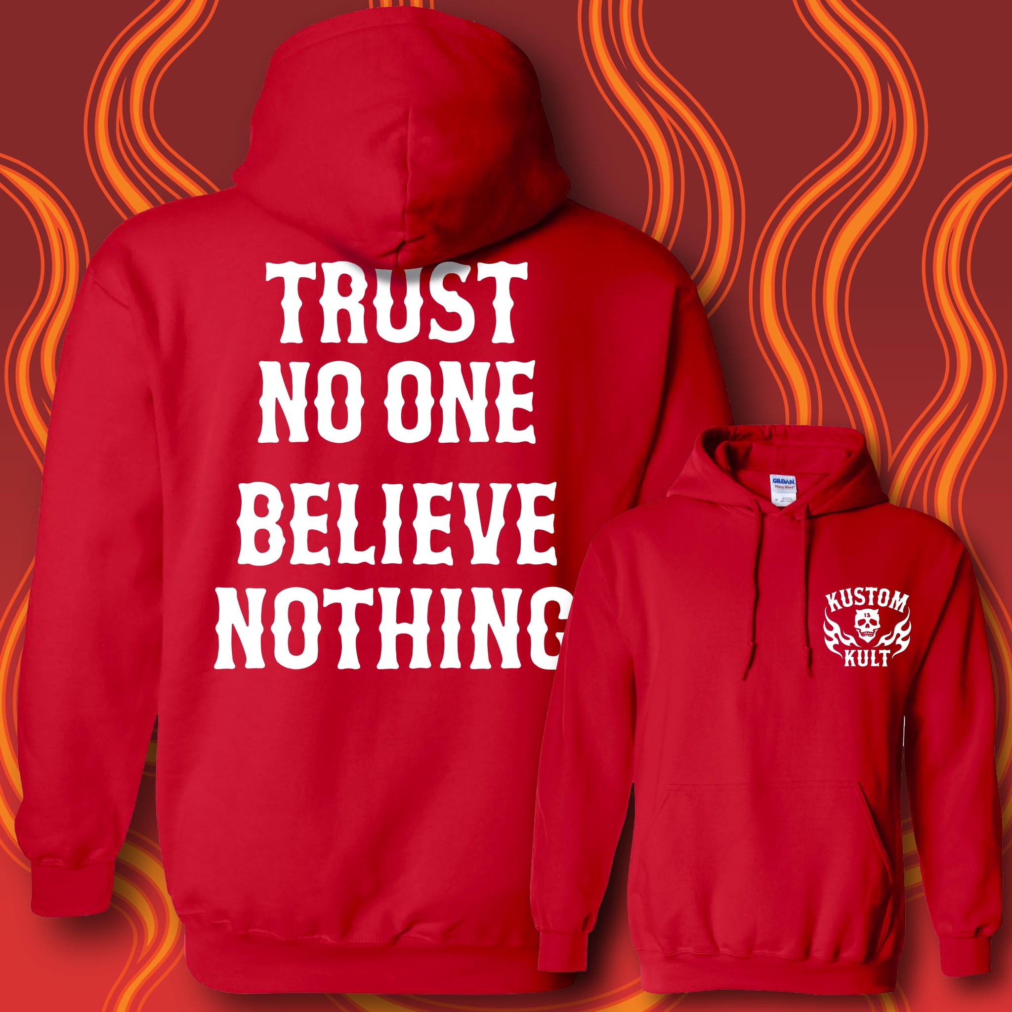 Grab TRUST NO ONE BELIEVE NOTHING on Short Sleeve Tees, Long Sleeve Tees, Hoodies & Crew Sweatshirts.