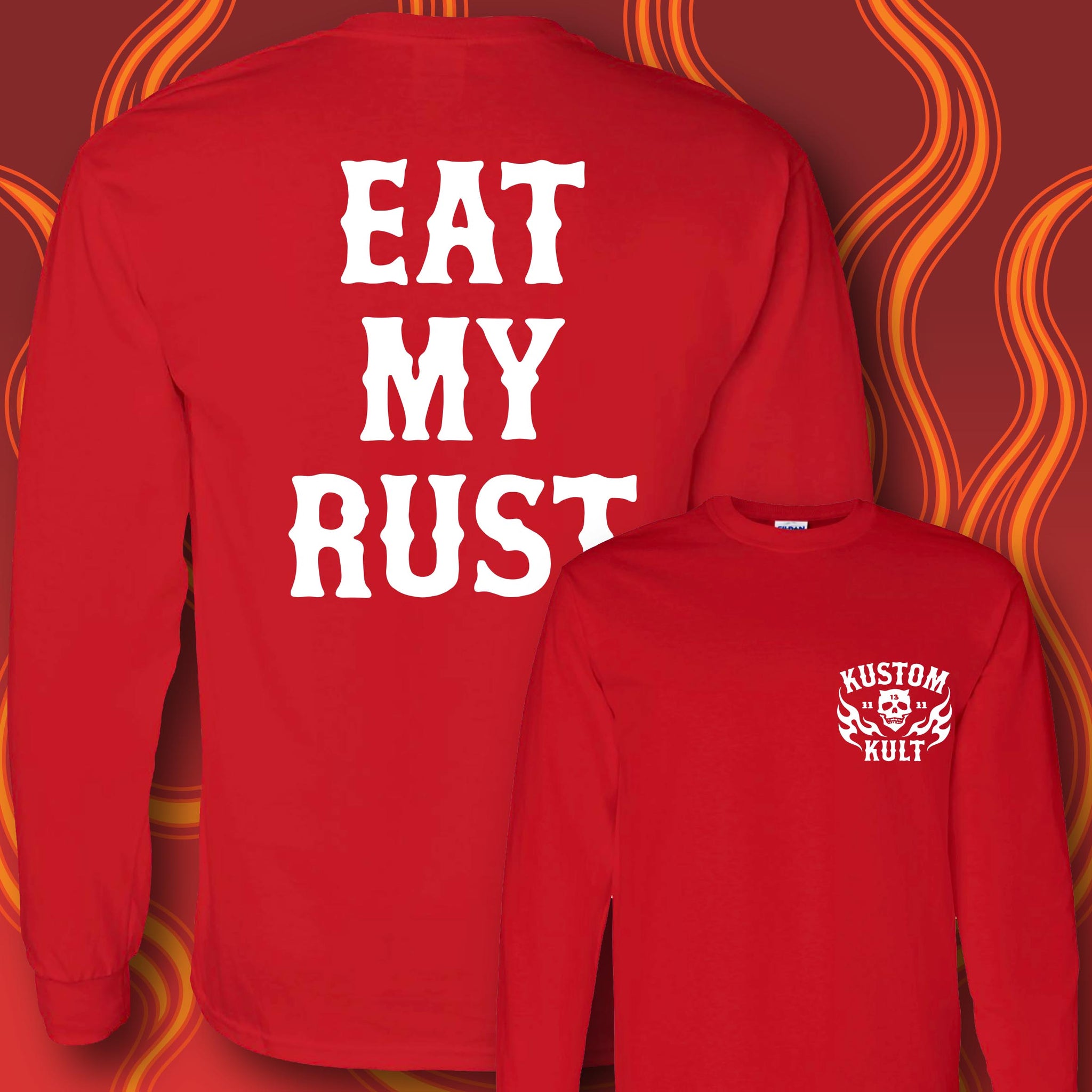 Grab EAT MY RUST on Short Sleeve Tees, Long Sleeve Tees, Hoodies & Crews.