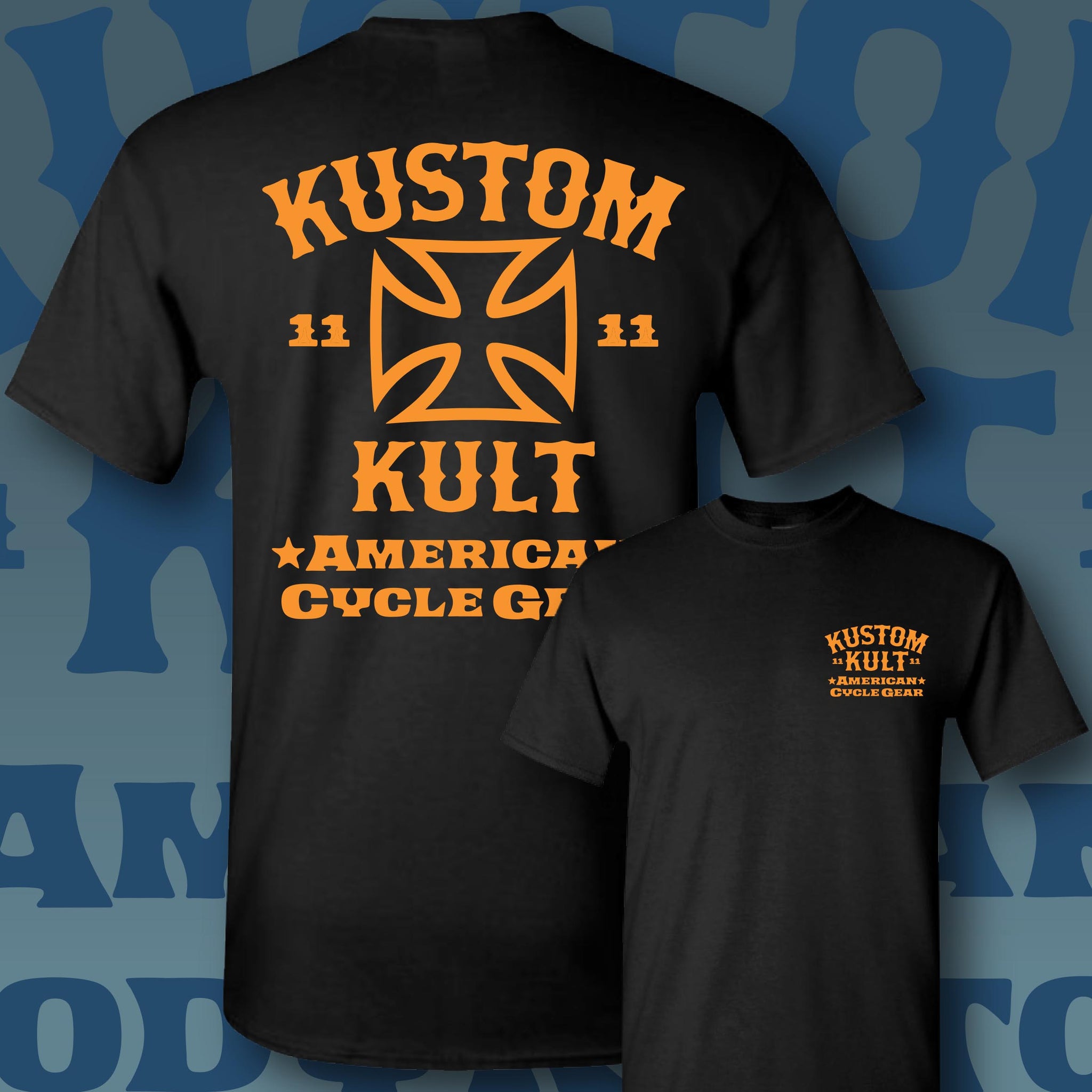 KUSTOM KULT statement shirt. Grab this art in 3 different colorways: WHITE, ORANGE, GRAY.