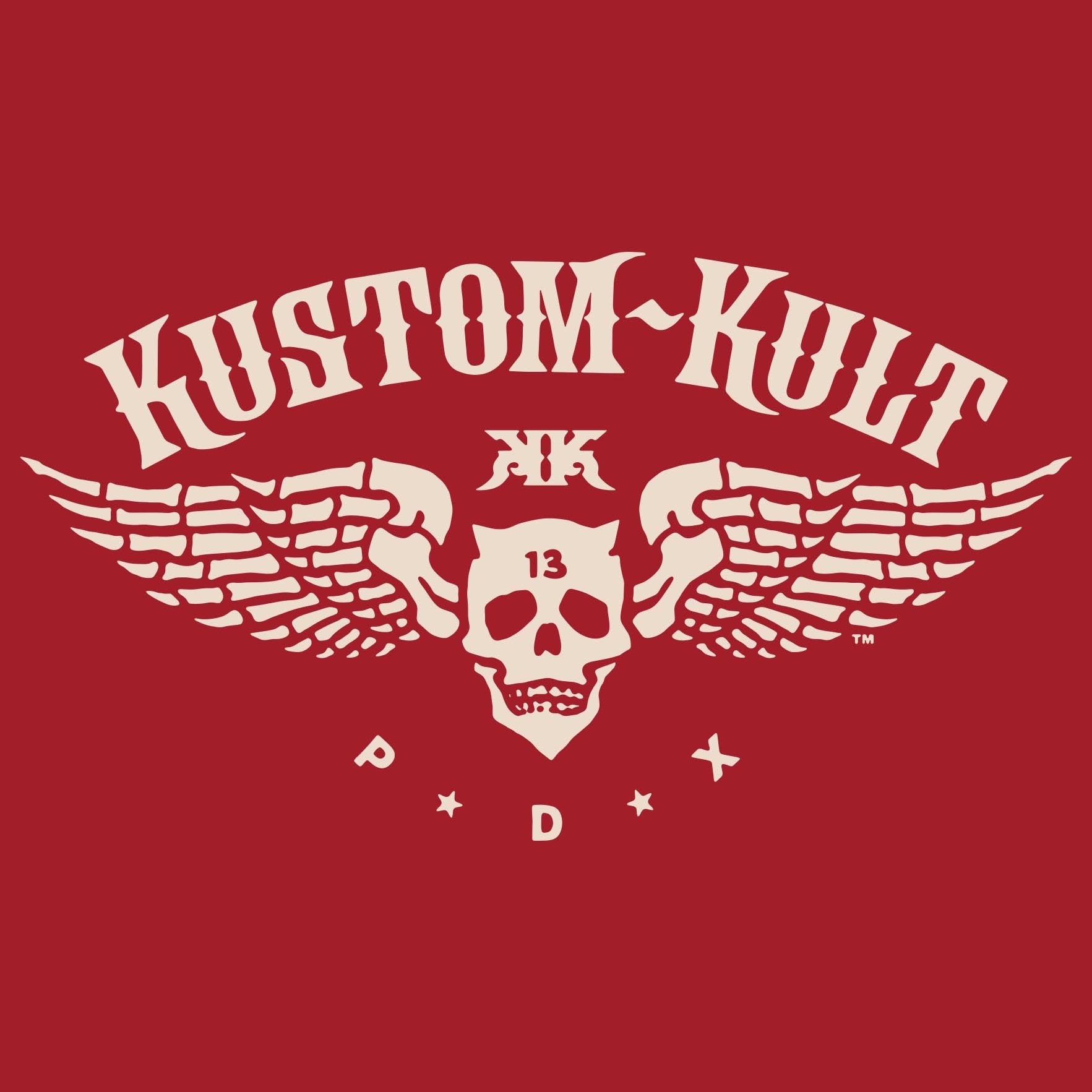 The logo that started it all. Represent the Kult & Kustom Kulture with this KK Original logo tee of the skull & wings of bone. A wardrobe must..