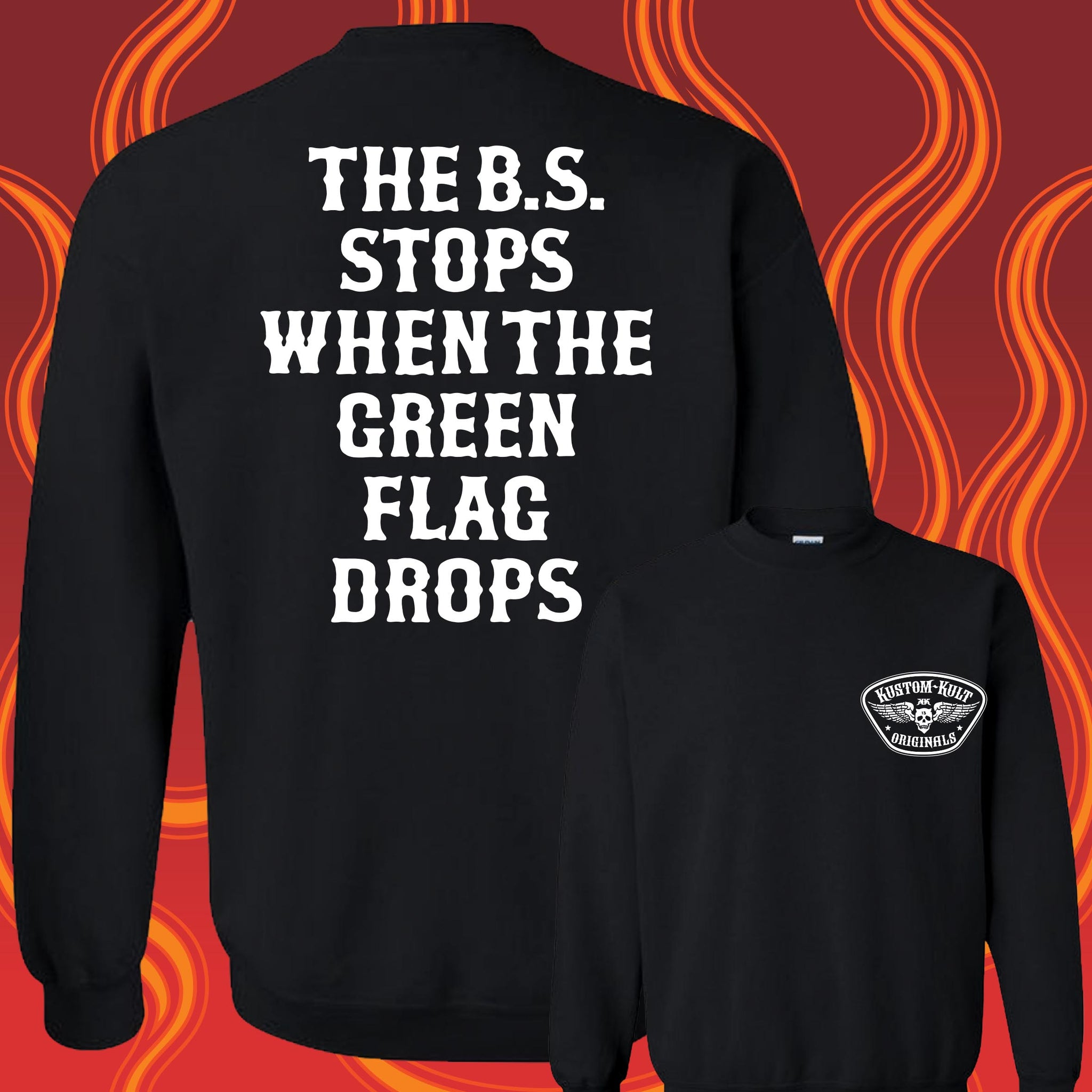 THE B.S. STOPS WHEN THE GREEN FLAG DROPS - Crew Neck - BLACK