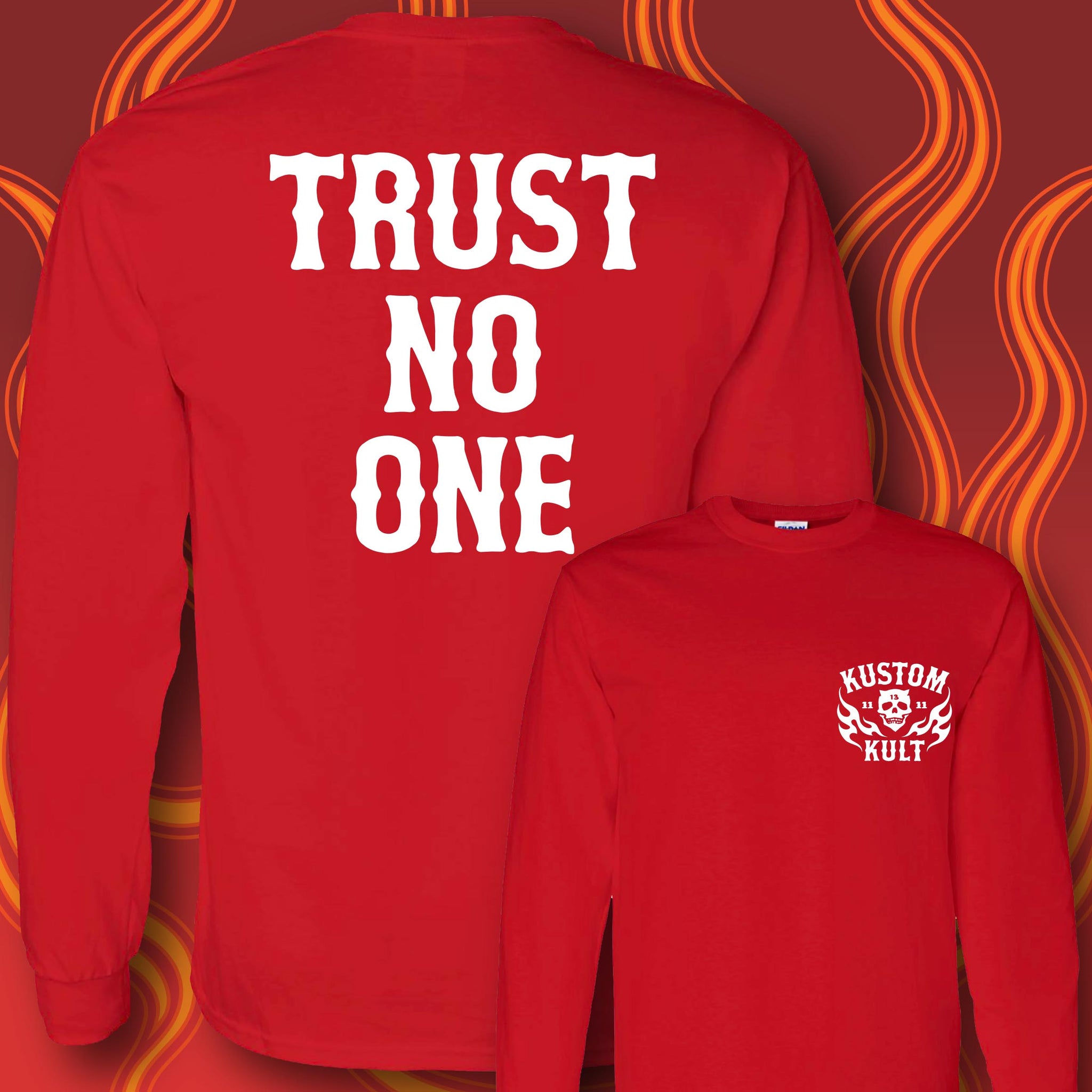 Grab TRUST NO ONE on Short Sleeve Tees, Long Sleeve Tees, Hoodies & Crew Sweatshirts.