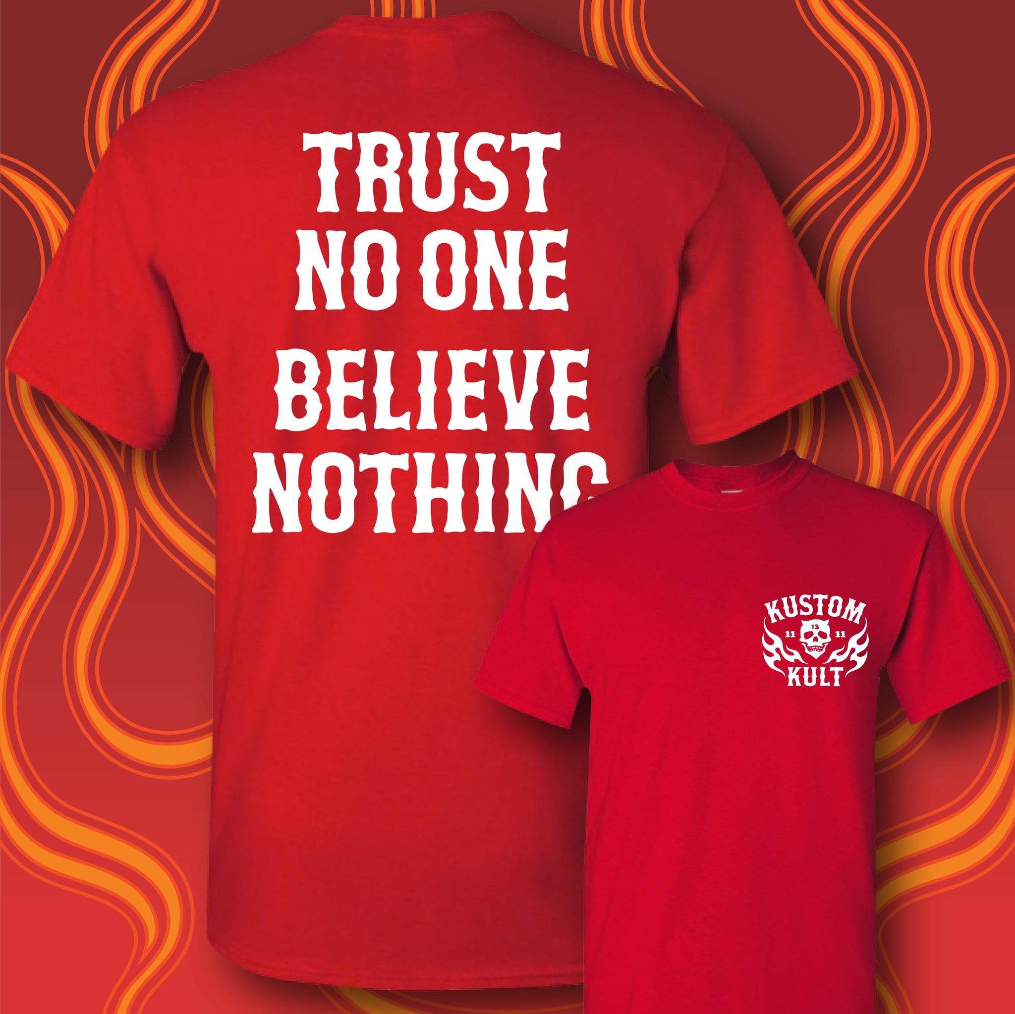 TRUST NO ONE  BELIEVE NOTHING - Short Sleeve Tee - RED